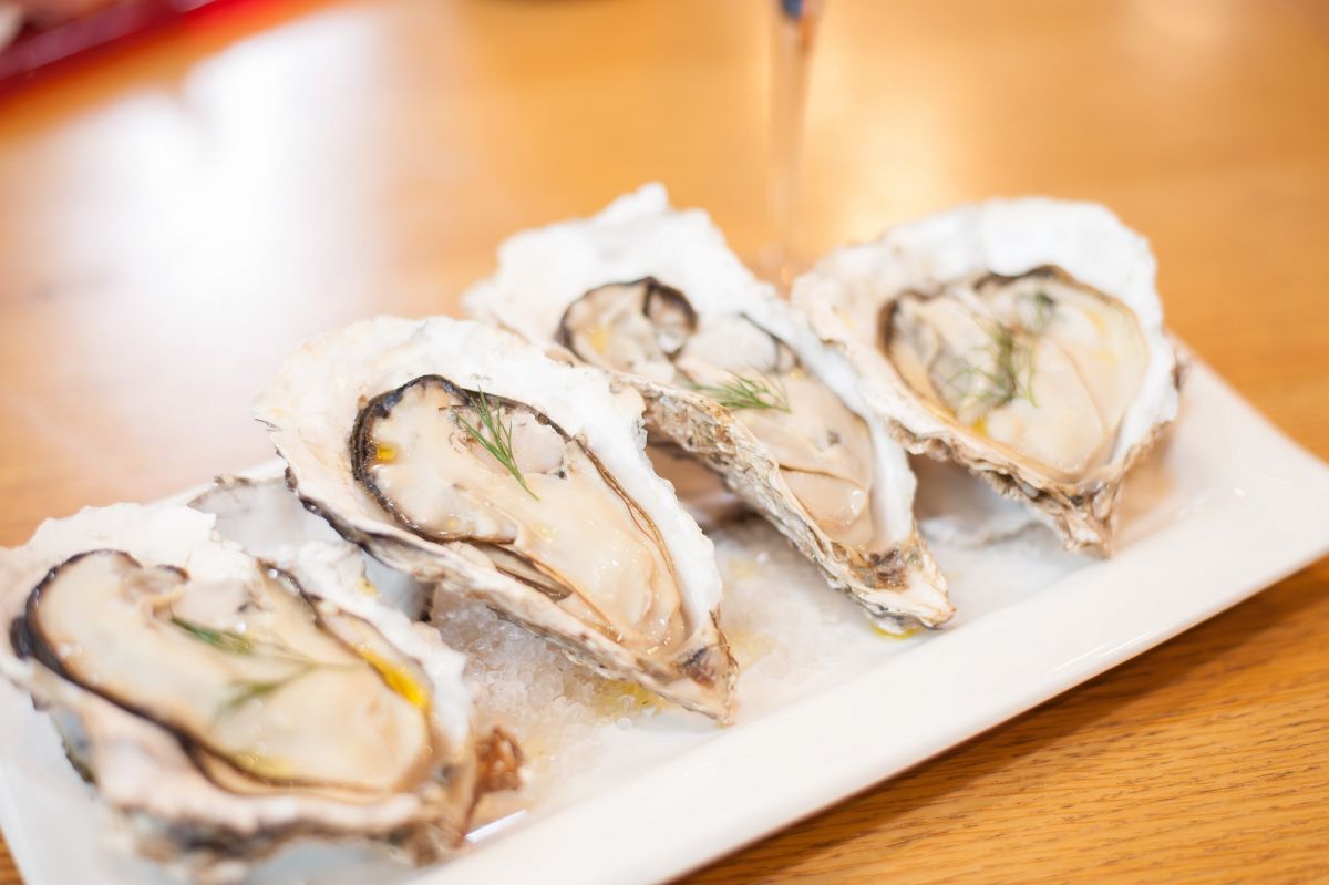 写真は、「シェフ厳選 牡蠣のヴァプール」。新鮮な牡蠣にフレッシュなディルとレモンオリーブオイルがトッピングされており白ワインにぴったり!また「BRIDGE日本橋」では、旬を迎えた牡蠣を扱うことを重視しており、初夏までは兵庫県産の牡蠣を、以降は、宮城県産の牡蠣を中心に扱うそう。