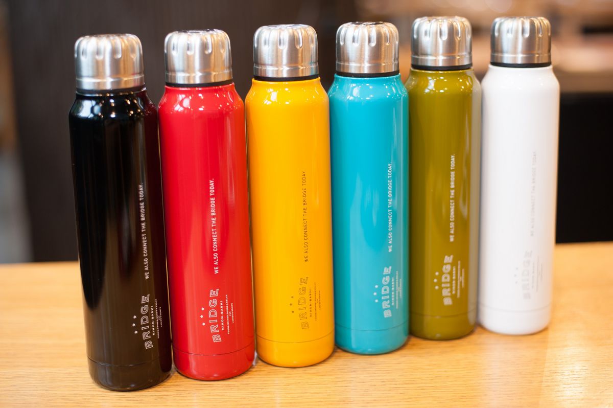 店内ではオリジナルボトルも販売中。こちらは、優れたデザイン性、耐久性を備える「thermo mug」とのコラボ商品!ロゴがオシャレでかわいいですね。