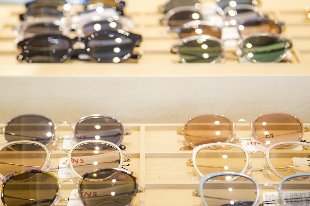 今回伺ったのは、レンズセットで5400円~と、リーズナブルで高品質な眼鏡が買えるアイウエアブランド「JINS(ジンズ)」。日本人の骨格に合わせた設計のベーシックなサングラスから、トレンドのデザイン、1本で眼鏡にもサングラスにもなる2WAYグラスまで豊富に取り揃えています。