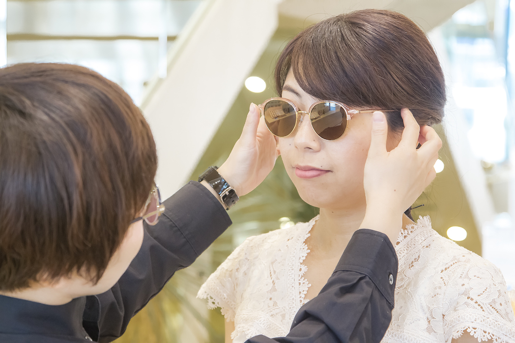 どの形や色が自分に似合うのか客観的に判断するのは難しい!そんな時は眼鏡のプロである店頭スタッフに相談にのってもらうのが一番。サングラス選びのコツを教えてもらいました。