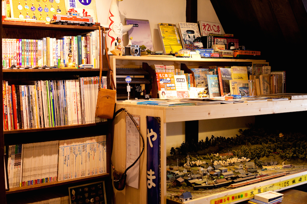 鉄道もそう。ご主人が友人たちと作ったという鉄道のジオラマの周りには、大樹が根をはるように知識が広がる鉄道本の数々。