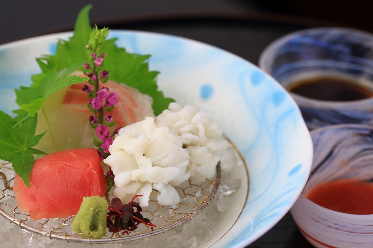 鶴清の食事は、京都の伝統を受け継ぐ会席料理。夏の川床メニューではガラスの器を使用するなど、見た目でも清涼感を感じさせてくれる一皿が登場します。「すずみ料理」とも称される川床料理の魅力のひとつです。