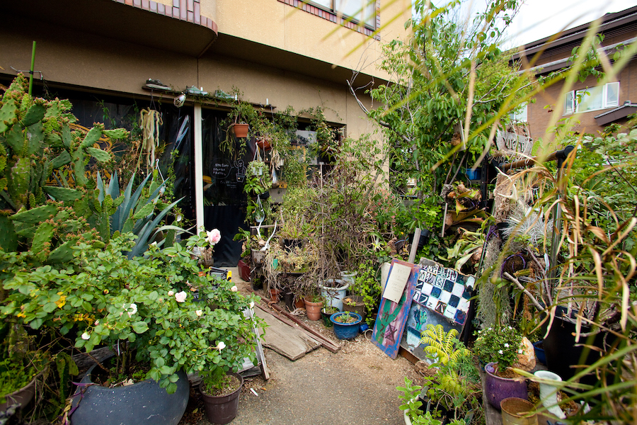 京都市内の喧騒から離れた、左京区岩倉は、近所に田んぼや畑が残るのどかな住宅街。そこにひっそりと息を潜めるようにしてあるのが「秘密基地植物園とカフェバー」。歩いていると見逃しそうな外観ですが、その扉を開くと…。