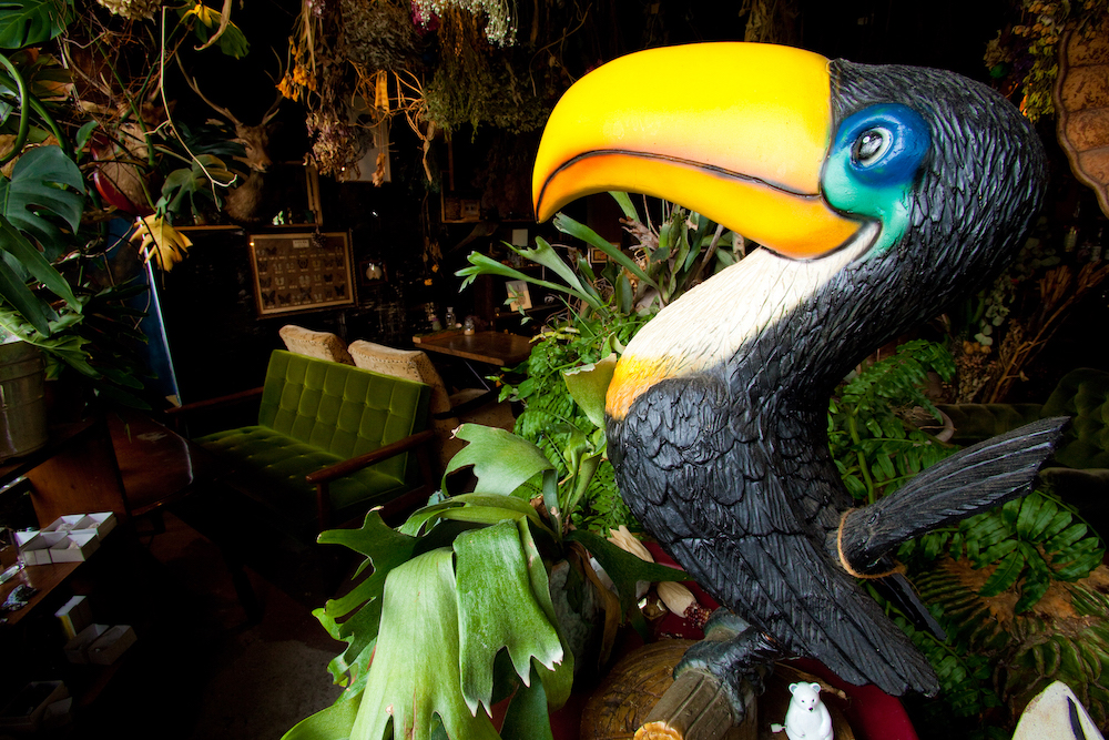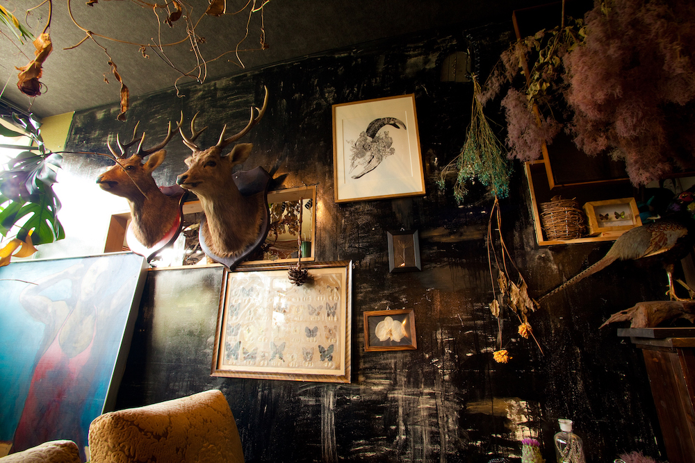 ドライフラワーや動物の剥製、蝶の標本、鉱石など。目につくものすべてが宝の山のようで、まるで廃校になった学校に忍び込んだ気分。