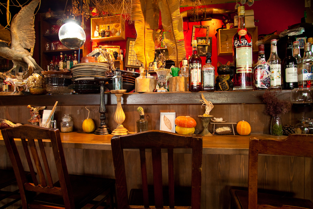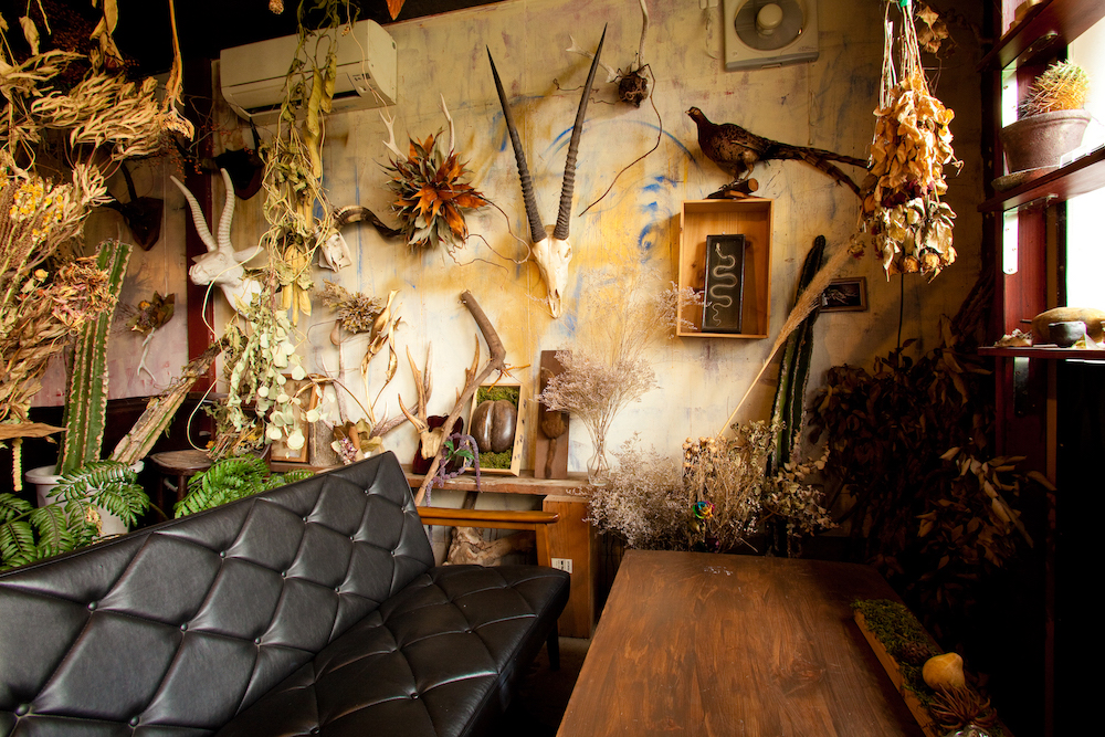 宿が地下鉄沿線の周辺なら、ふらっと夜ご飯やちょい飲みに出かけるのもオススメです。剥製や植物に見守られながらのひとり飲みもいい感じ。