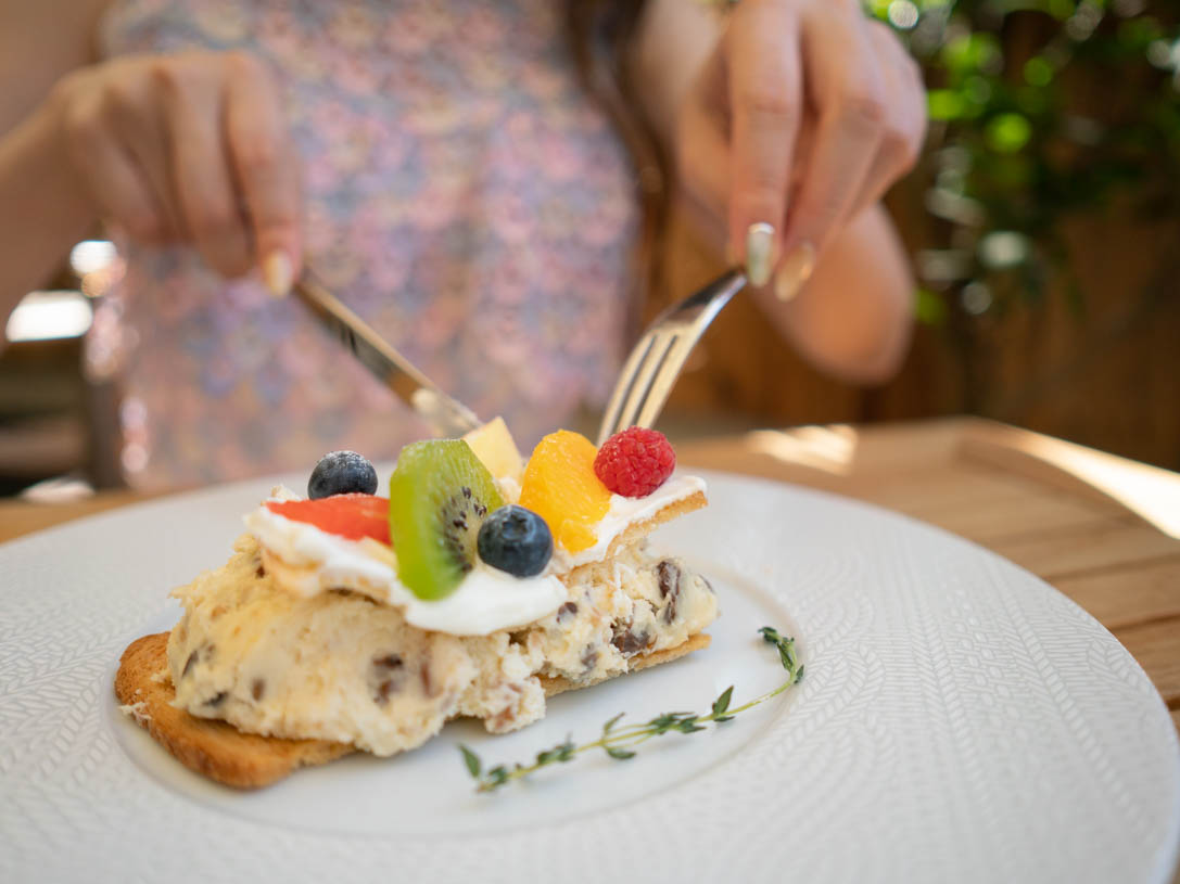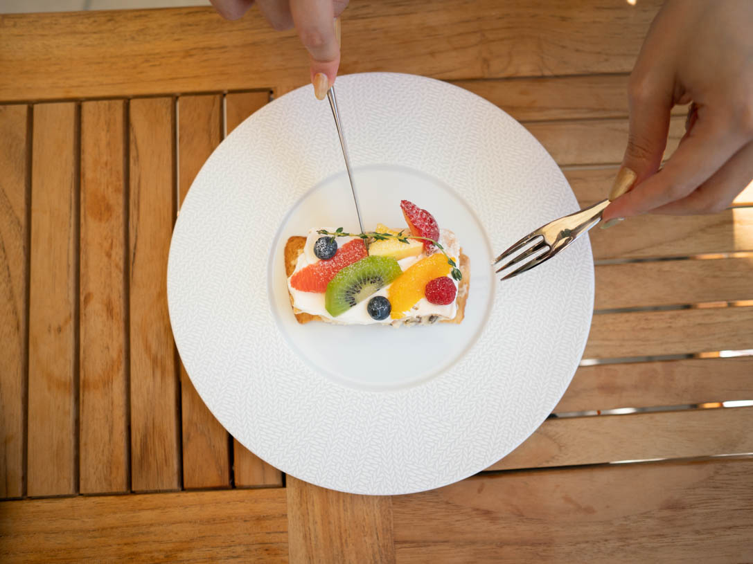 スモーブローの上に乗っているカラフルなフルーツは、季節によって変わります。色とりどりの可愛い見た目は写真映え間違いなし。