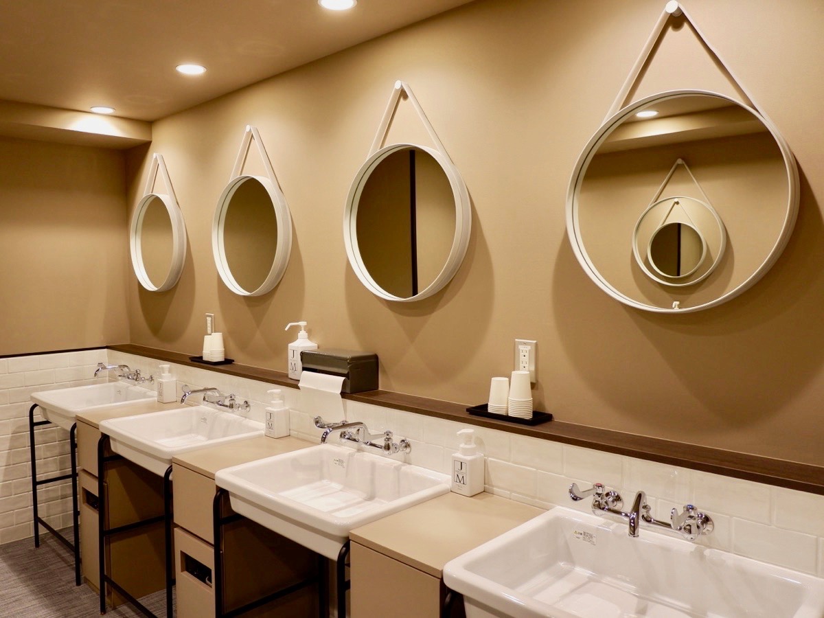 パウダールームもきれいで広々としています!「JAMES MARTIN(ジェームズマーティン)」のハンドソープや除菌用アルコールを導入しており、除菌や消臭対策もバッチリです。