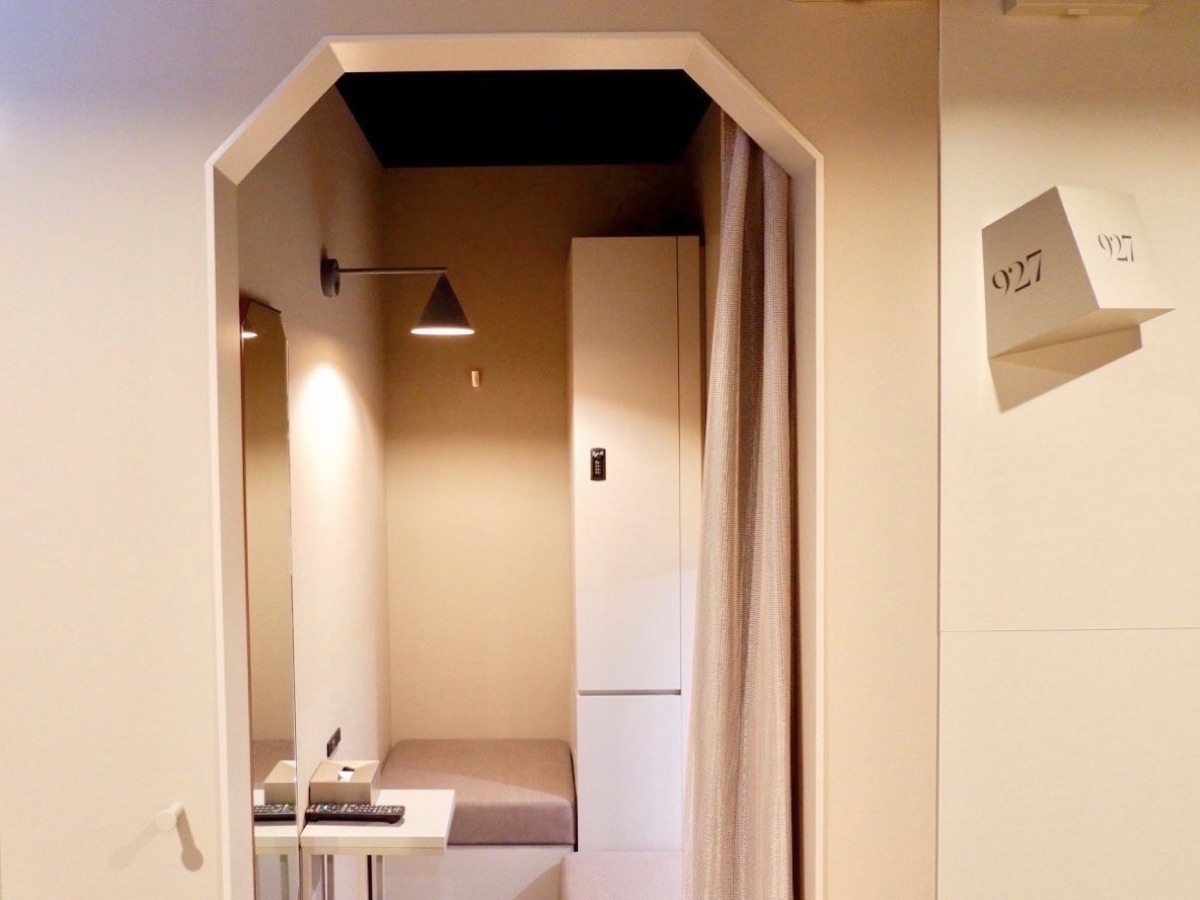 写真はSサイズ(約2.5平米/3900円〜)でベッド周りをカーテンで仕切っています。日によってはタクシー代より安くなるので、すぐ予約が埋まってしまうとか!