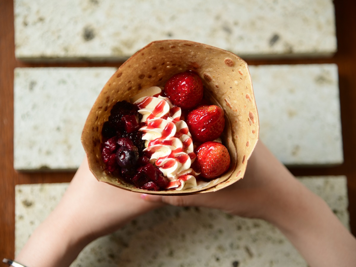 採掘場跡地を見学したら、ちょっとひと息。資料館に併設されるカフェ&セレクトショップ「大谷ミュージアム ROCKSIDE MARKET」の「とちおとめとマスカルポーネクリームのスウィーツガレット」700円。生地に栃木県産のそば粉を使っているのが特徴です。