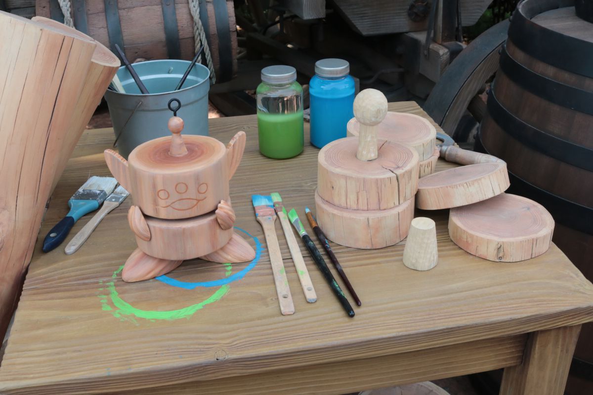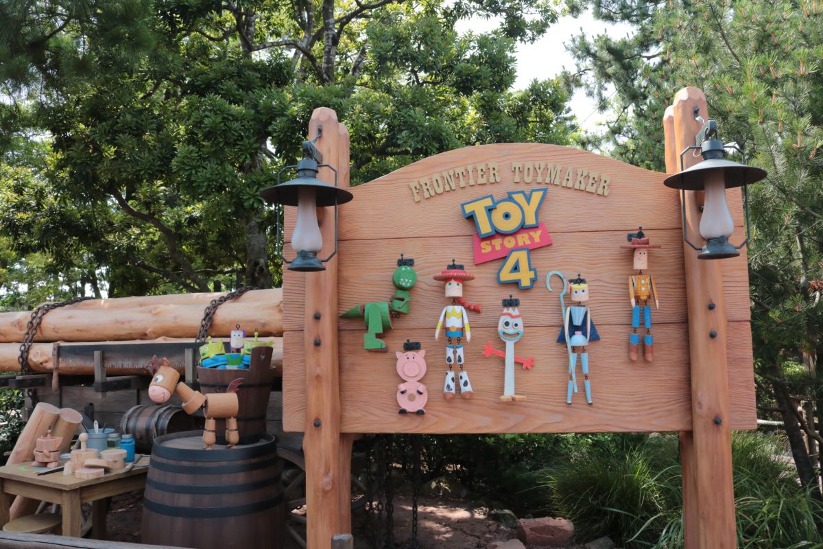 フロンティア・トイメーカーという看板の通り、木で造られた『トイ・ストーリー』のキャラクターたちが並んでいます。なかには造っている途中のものも。