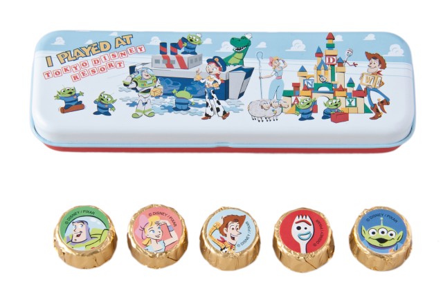 このほかキャラクターが全面にプリントされたタオル類やクッション、トートバッグやリュックサックなども。購入は東京ディズニーランドの「プラネットM」、東京ディズニーシーの「エンポーリオ」(お菓子類は「ヴァレンティーナズ・スウィート」)で。