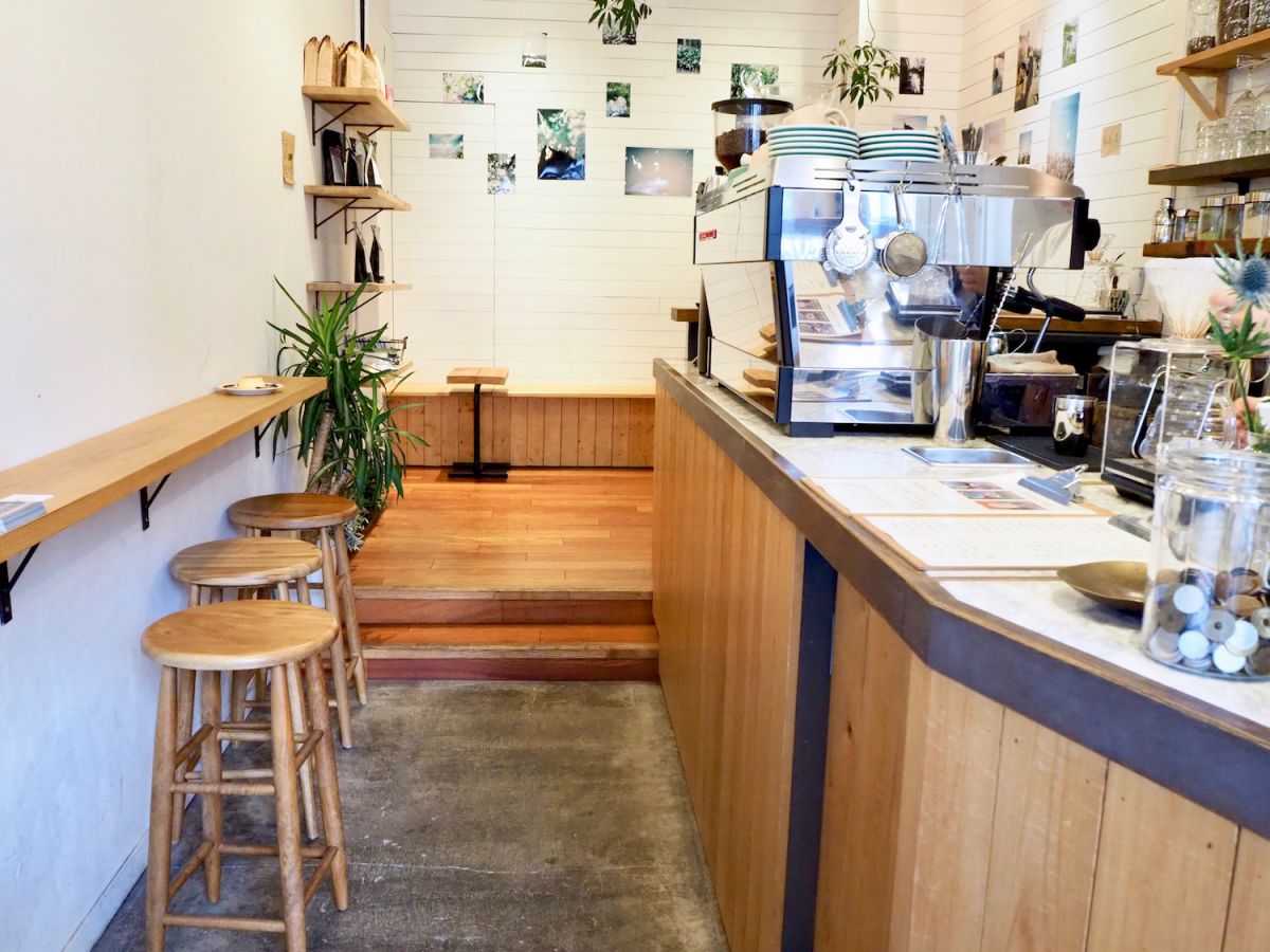 オーナーがオーストラリアのメルボルンの街からインスピレーションを受けたという、温かみのあるウッド調の内装。