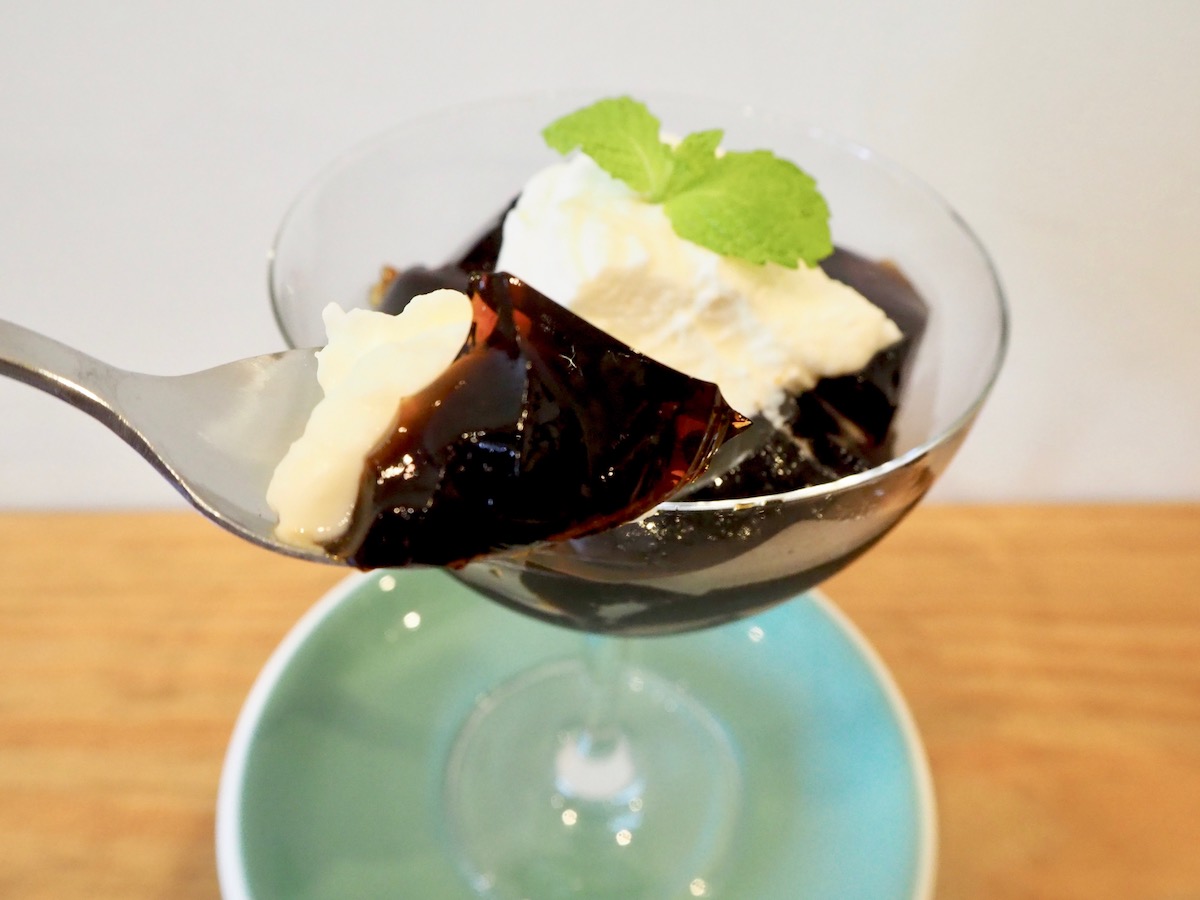 ハンドドリップコーヒーを使用したゼリーの本格的な苦味と、ホイップクリームの甘みがベストマッチ!