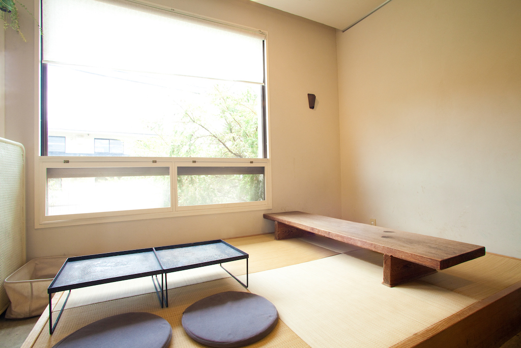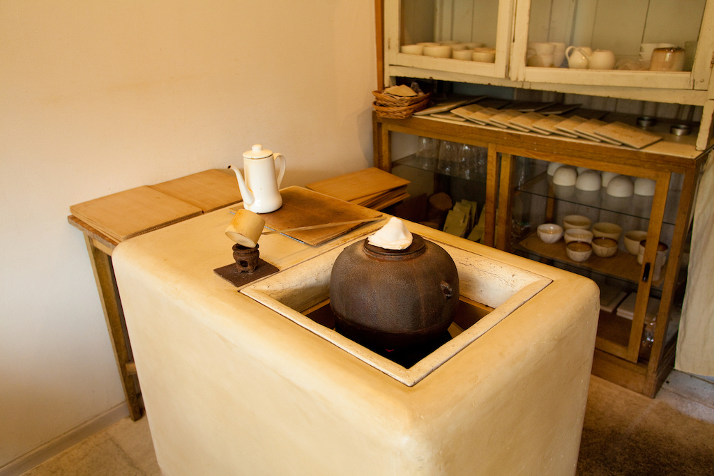 茶房らしく、畳敷のスペースもあり、手前には茶釜があります。茶釜で沸かしたお湯で淹れたドリンクは、それだけでおいしさが二割増し。
