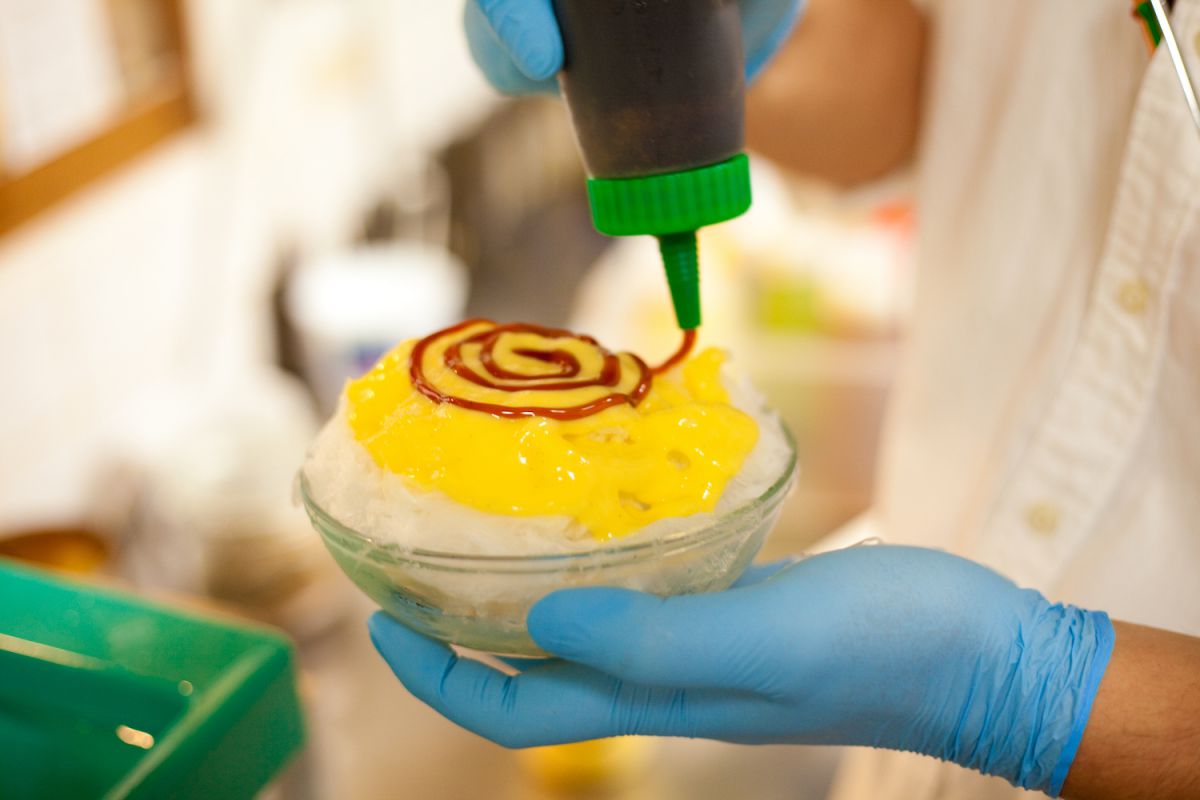 こちらが、斬新で見た目もかわいい「プリンかき氷」。特別に製作過程を撮影させていただきました。