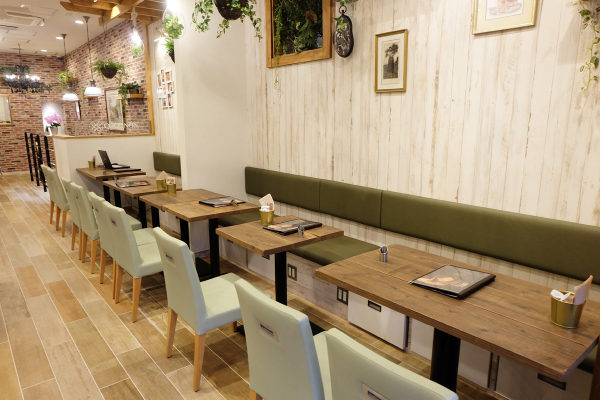 1階はプリンやシフォンケーキが購入できるテイクアウトスペース。ショーケースの中には、定番のプリンや季節限定のプリンなどがずらりと並び、どれにしようか迷ってしまうほど!5~6個プリンを購入する人も多く、プリン好きにはたまらないお店です。