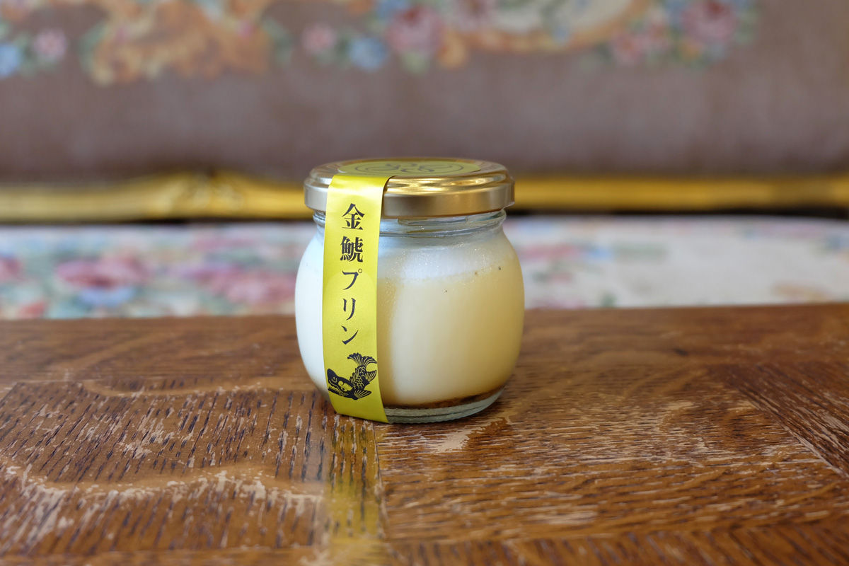名古屋城の「金鯱」をイメージした金箔もあしらい、名古屋らしいプリンに!生クリームのまろやかさとミルキーさが自慢のプリンです。