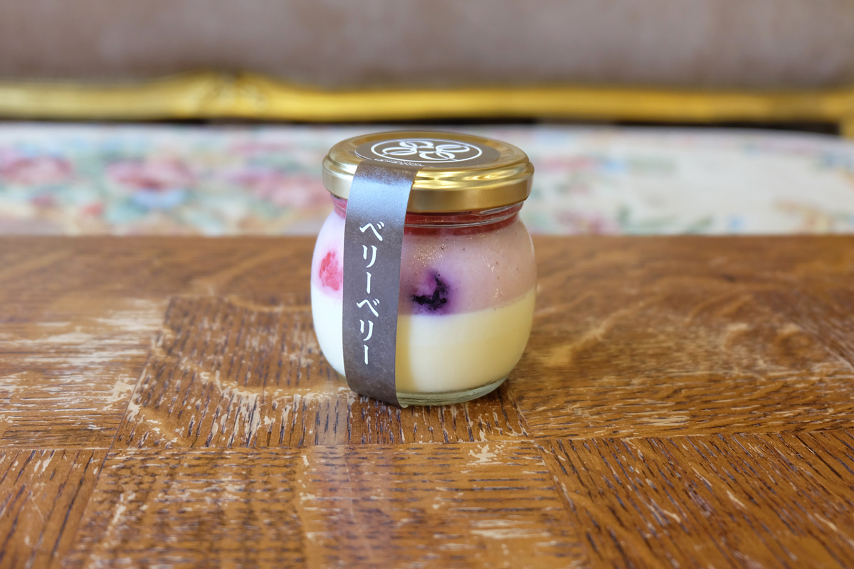 こちらも常時登場する「ベリーベリー」(450円)。なめらかプリンの上に、いちごのプリンを重ねた贅沢なプリン!ブルーベリーとラズベリーの果実が入っているので、食感も楽しむことができます。