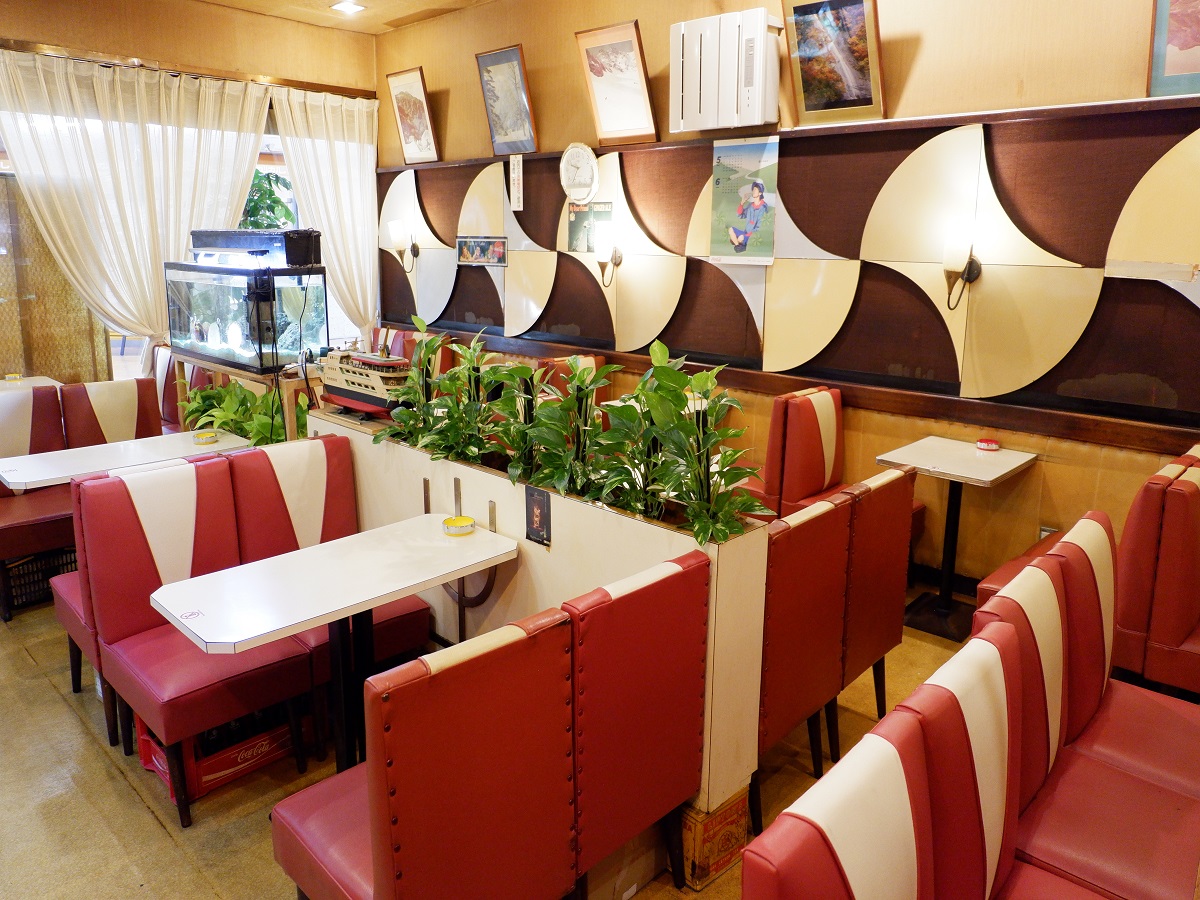 レトロで可愛いソファーが並ぶ店内は、どこかなつかしい気分になりますね。