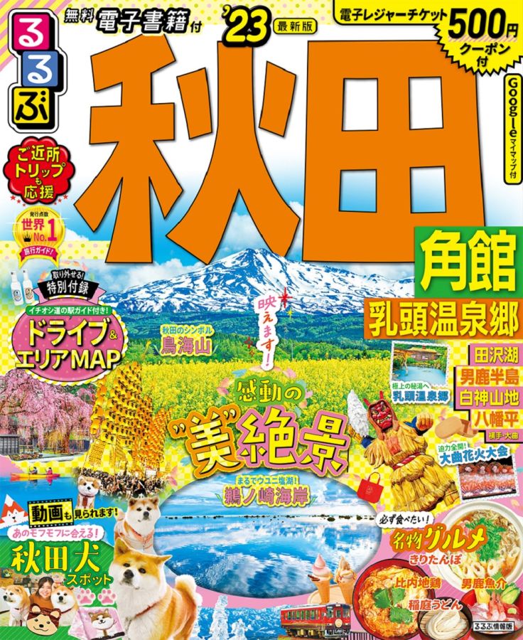 掲載している秋田県のスポットについてもっと詳しくお知りになりたい方は、発売中の『るるぶ秋田 角館 乳頭温泉’23』をご覧ください!