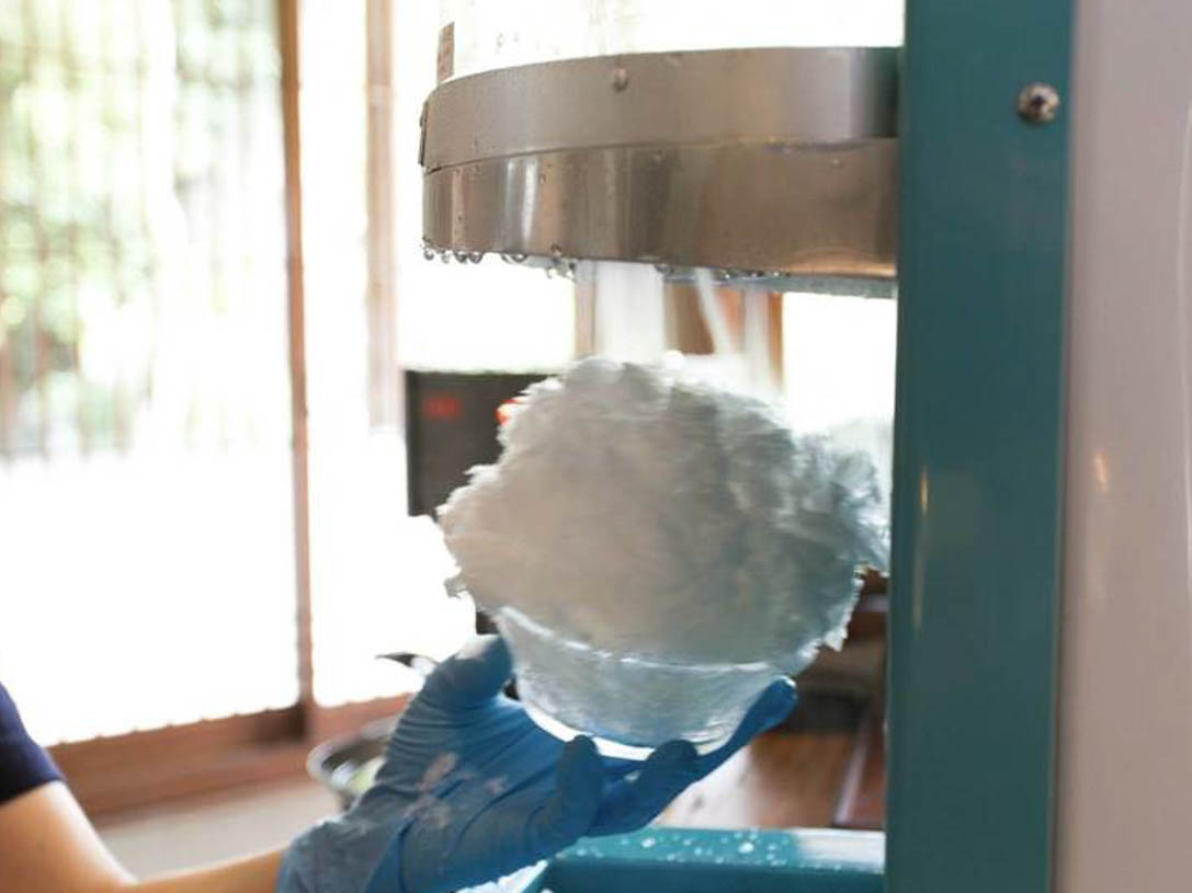 とにかくふわふわな「玉氷」のかき氷。その秘密は、上質な氷を少し溶かしてから削ること。そうすることで、柔らかく口どけのよい、ふわふわなかき氷になるんです。