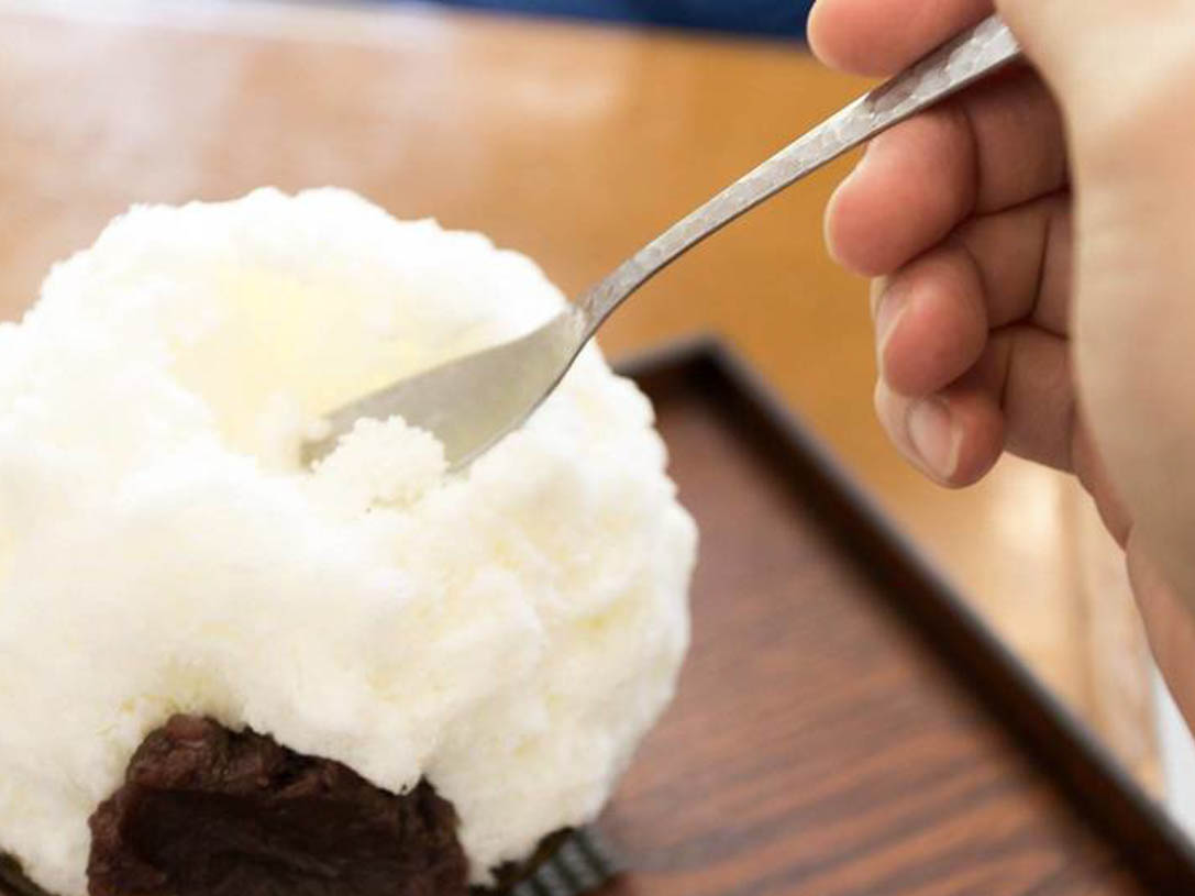 まるで羽のように軽いかき氷と、なめらかな味わいのミルク。あんこと一緒に食べると、心地よい甘みが口のなかに広がります。一見ボリューミーに見えるかき氷ですが、とっても軽いのであっという間にペロリと食べられてしまいます!