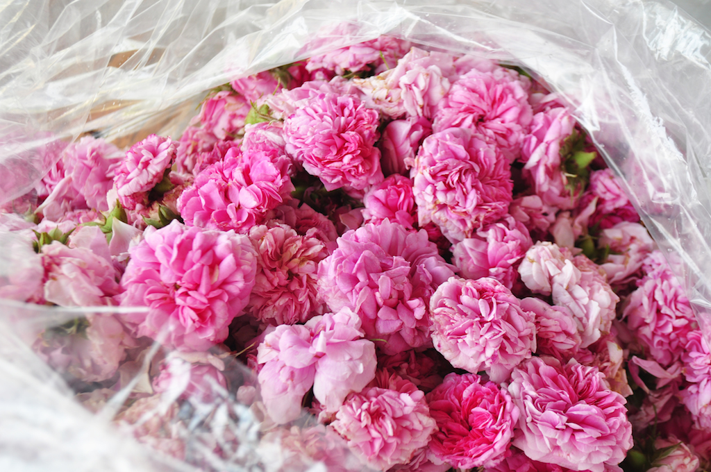 収穫したてのダマスクローズ。とにかく香りがゴージャス!