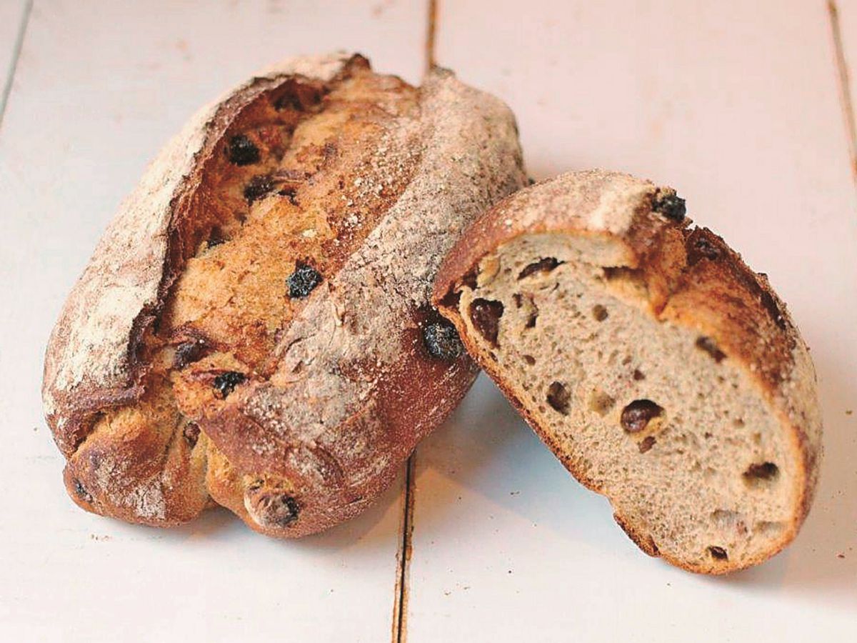 人気はルヴァン・レーズン777円。朝挽きの地粉「ゆめかおり」と自家製酵母を使用しています。中に入ったクルミがアクセント。1日10個限定です。