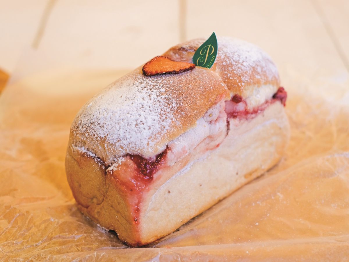 契約農家のとちおとめ702円。イチゴミルクで生地を練り、とちおとめを生地に練り込んだイチゴ尽くしなのが魅力。