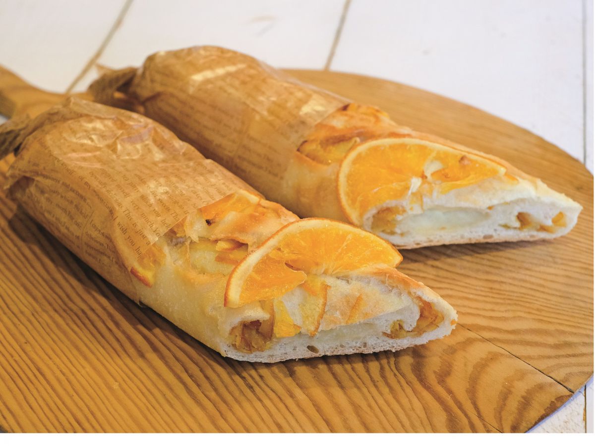 パーネ・アランチャ432円。生地にオレンジクリームを練り込みオレンジコンフィをのせて焼き上げた、一番人気のおすすめの品です。