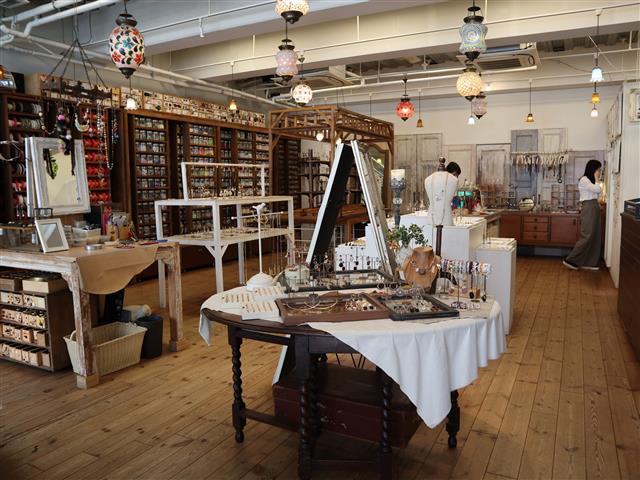 オリジナルのアクセサリーをリーズナブルに作ることができるショップ。フレンチアンティークな世界が広がる店内は、既製品はもちろん、約5000種類ものパーツが並んでいて圧巻です。まるで宝探しをしているような気分。どれにしようか迷いに迷いそうですが、ここはむずかしく考えず、既製品を参考にしながら、自分好みのパーツを選びましょう。デザインとパーツが決まれば30分程度でオーダーメイドのアクセサリーが完成します。すぐに身につけることができるのもうれしいですね。