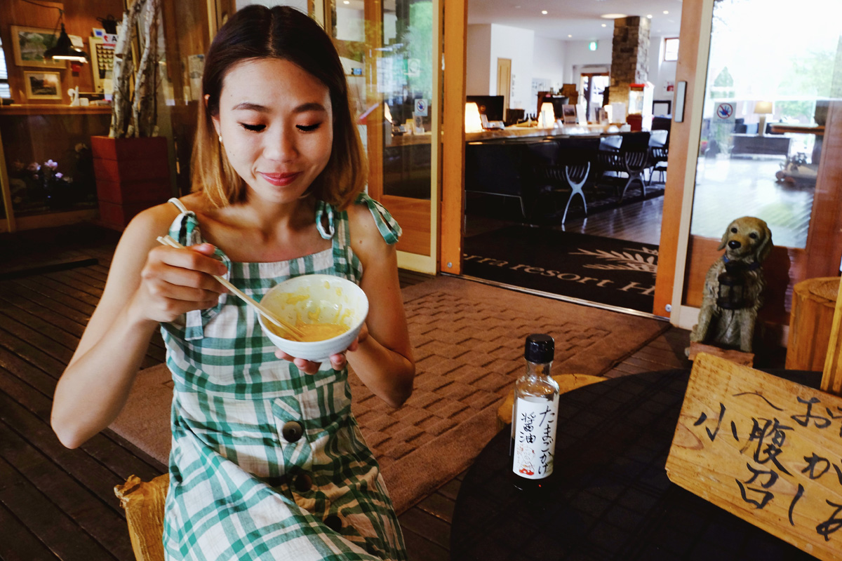 シェラ名物のとれたて新鮮、玉子かけご飯をいただきます。