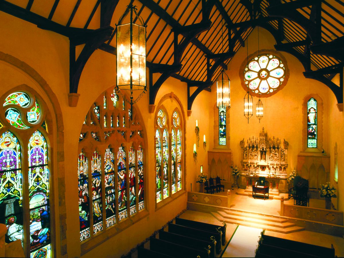 アンティークのステンドグラスを展示する美術館。厳かな雰囲気の建物に入ると、なんとも穏やかな気持ちにさせてくれます。