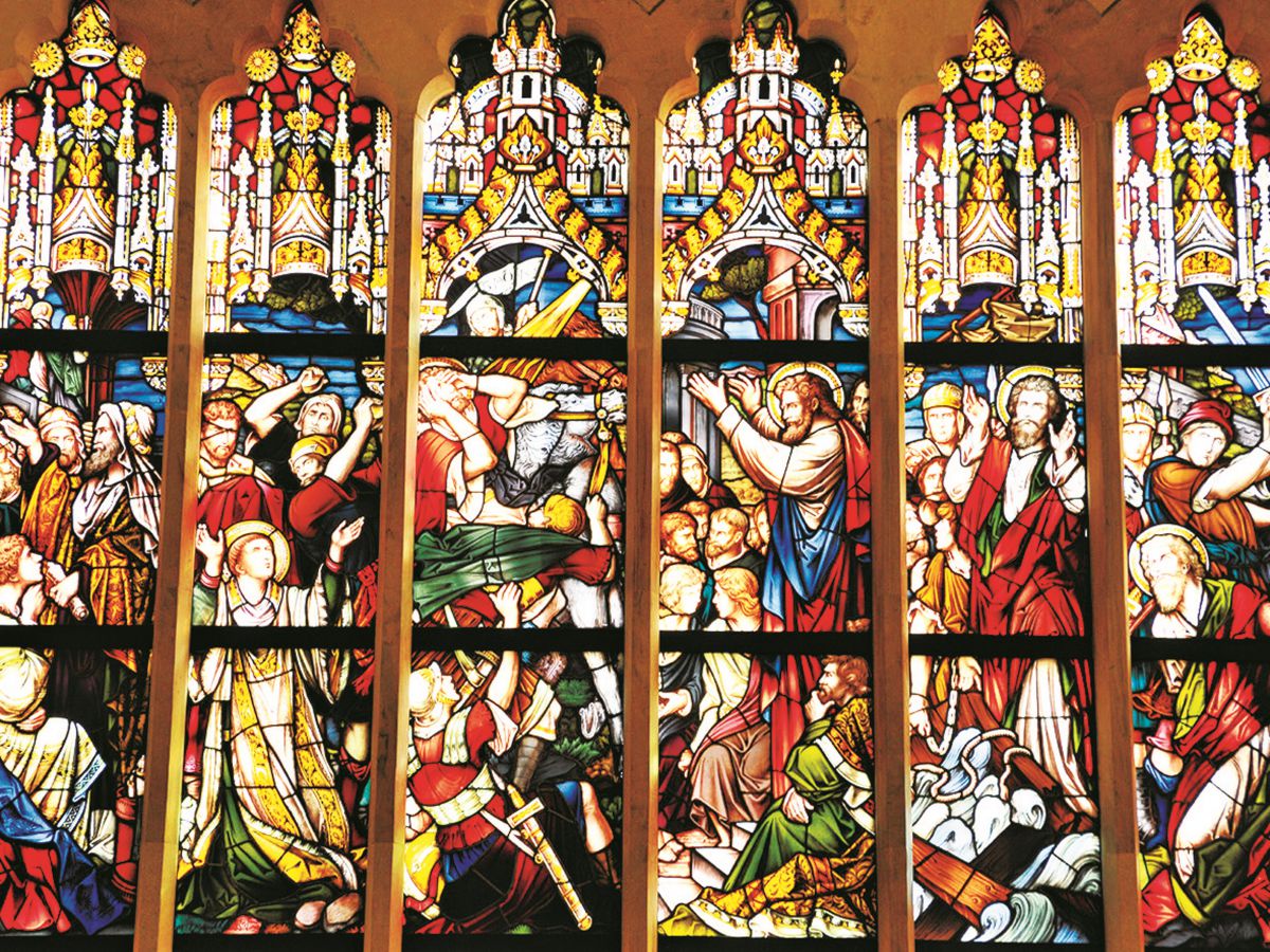 壁一面に聖書のシーンが描かれているセント・ラファエル礼拝堂。写真は「聖パウロの生涯」です。