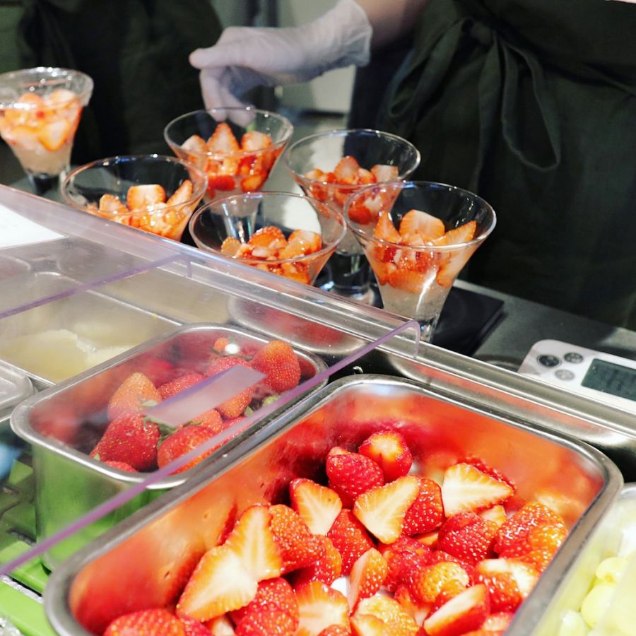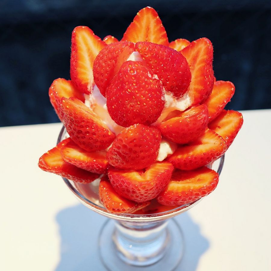 そしてそのソフトクリームが見えないくらいに、フレッシュいちごがたっぷり飾り付けられます。
