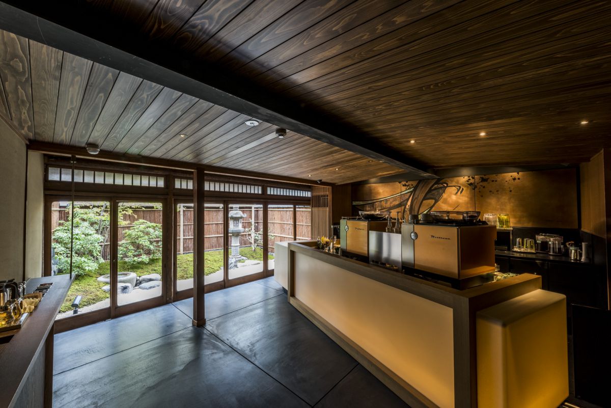 京都の伝統的な家は、入口が狭くて細長い、いわゆる「ウナギの寝床」。入口で注文したら、通路を通って奥のバーカウンターでドリンクを受け取ります。