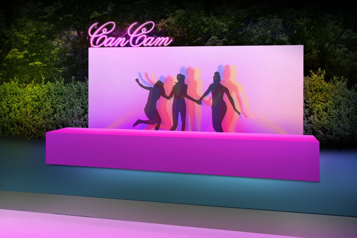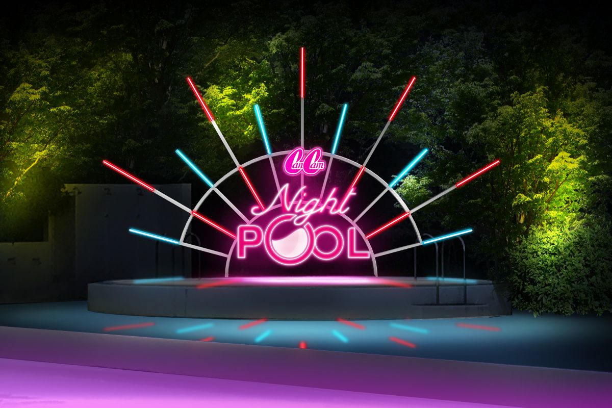 毎年人気は「CanCamナイトプール」ロゴのネオンサインが光るフォトスポット。周りの照明が打ち上げ花火のように、色をさまざまに変えてライトアップされます。