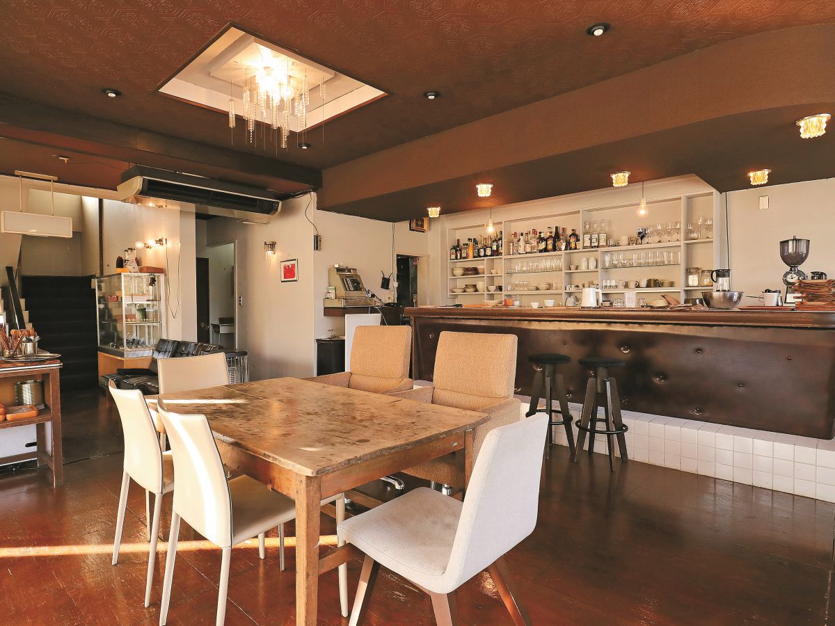 アンティーク家具を配した店内に心地よい音楽が流れるカフェ。