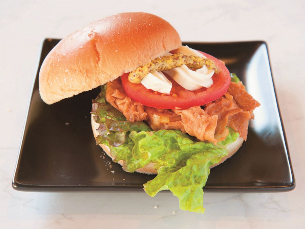 湯波と玉ネギをテリヤキソースにひと晩漬け込み、まるで肉のような歯ざわりになっています。シャキシャキの玉ネギがアクセントです。