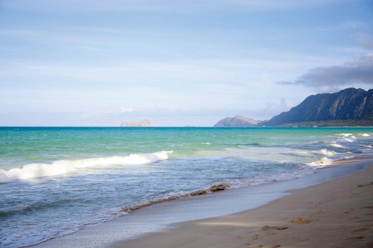 ターコイズブルーの海、きめ細やかな砂浜がどこまでも続くビーチ。パノラマで楽しめる眺望も美しく「ゆっくり過ごせる」と評価するリピーターも多いのだとか。ワイキキからも比較的近く、白砂があることから、ウェディングフォトのメッカとなっています。