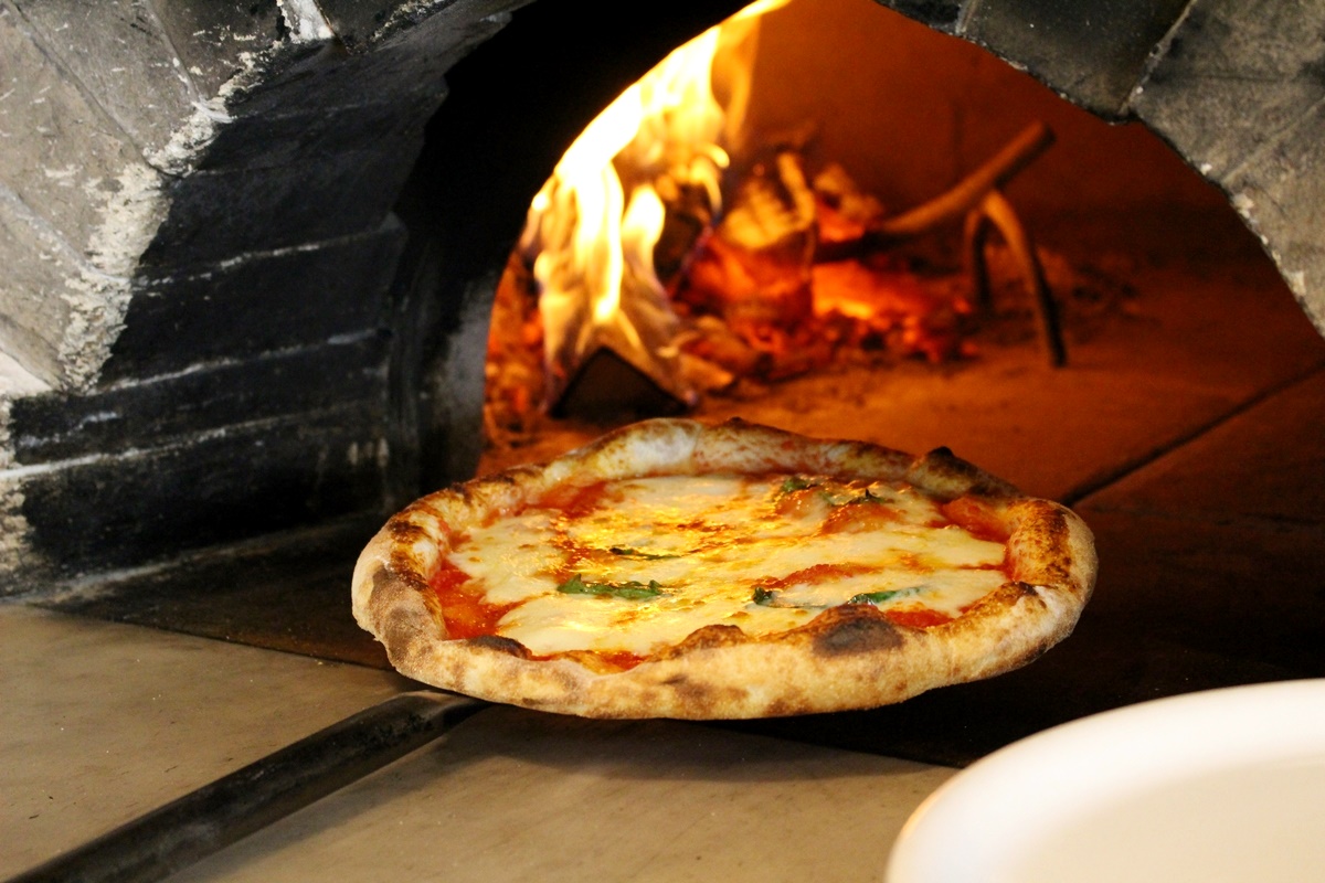 ランチタイムにぜひ楽しみたいのが、アツアツでトロトロの本格的なナポリピッツァ!「両国テラスカフェ」では、専門の職人が薪を使って石窯でピッツァを焼いています。薪で焼くのは経験と技術が必要ですが、表面カリッ、内側ふんわりの食感に仕上げるのに欠かせないのだとか。イタリア産と国産をブレンドした小麦粉と天然酵母を使用することで、モッチモチの食感と甘さを生み出しています。
