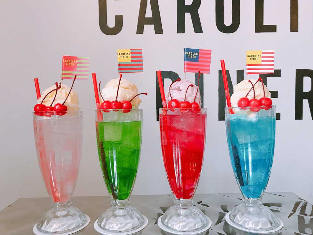 JR原宿駅から徒歩10分ほどの住宅街にあるカフェ「CAROLINE DINER(キャロラインダイナー)」の、クリームソーダが話題沸騰中。アメリカンサイズのグラスに入ったカラフルなソーダにアイスクリームがオン、もちろん写真映えもばっちりです。50年代のアメリカのダイナーのような店内もおしゃれですよ。