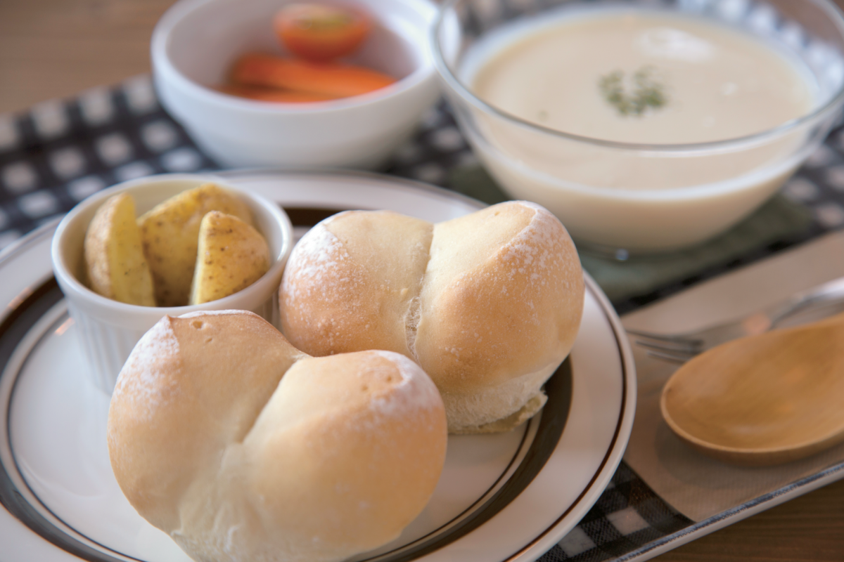 芽室の畑の真ん中にポツンとたたずみ、日高山脈の風景にほれ込んだ夫婦が営む、週末限定オープンのお店。風味豊かなパンや十勝の食材を使ったランチが味わえます。写真のスープセットは、旬の野菜などを使った日替わりスープとパンのセット。