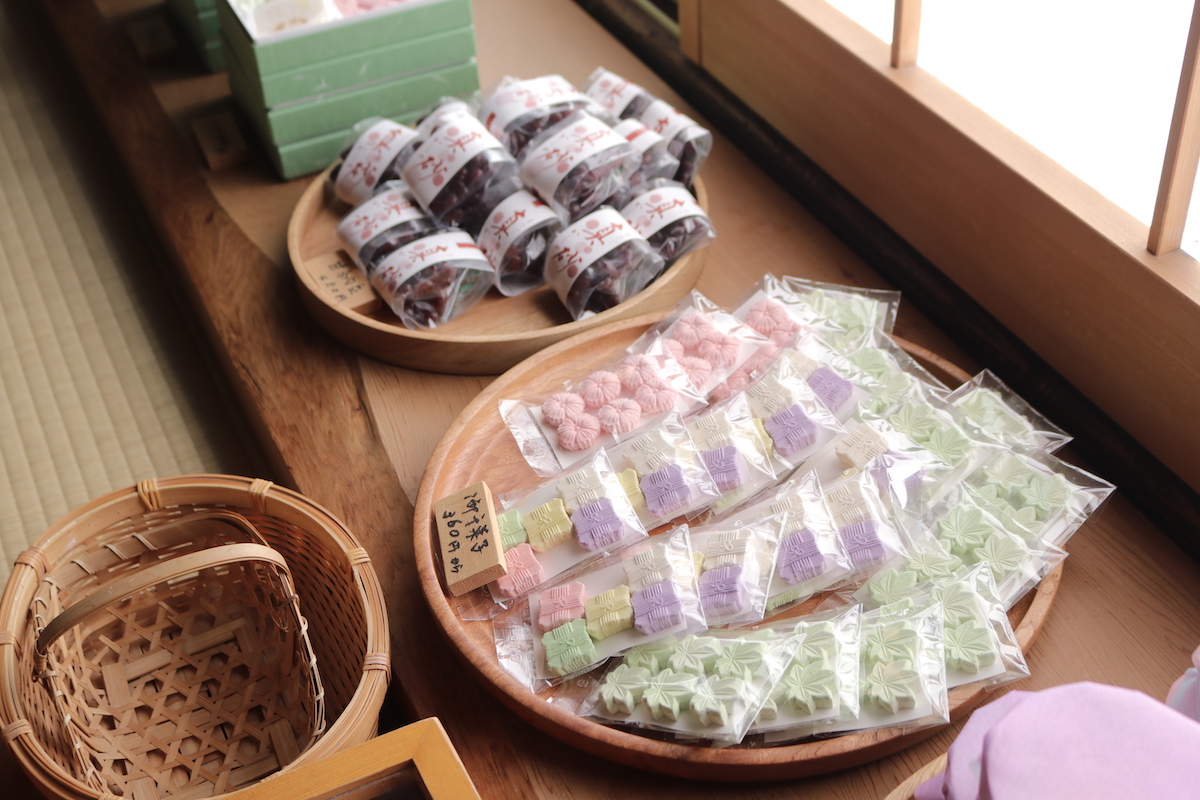 上生菓子は通年の6種類と季節によって1種類をラインナップ。餅米と和三盆糖の蜜だけで仕立てたせんべいや上品な干菓子は、おもたせにもぴったりです。