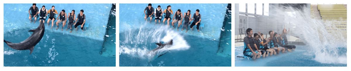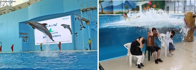 さらに、もっとずぶ濡れになりたい!人には、「水かぶりシート」がおすすめ。ショープルの浅瀬部分に入って、ダイナミックなイルカのパフォーマンスを間近で体感してはいかが。