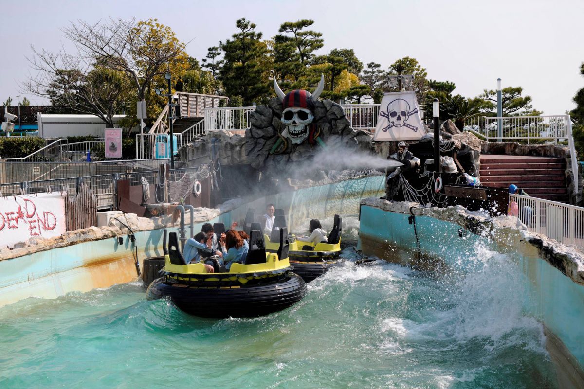 激流をチューブ型のボートで進む「アクアライド」もずぶ濡れ覚悟で挑戦。海賊たちの大量の水攻撃をうまくかわせるかな!?
