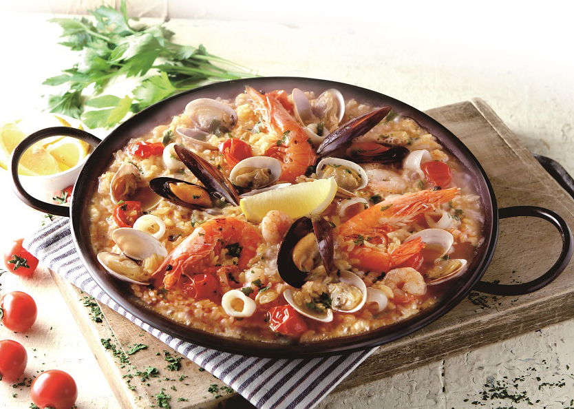 もうちょっと食べたいな~となったら、アラカルトメニューも。「名物!溶岩石で仕上げた魚介のパエリア」2000円、「アンガスサーロインステーキ」1900円、「厚切りベーコンと信州ポークソーセージの盛合わせ」1000円、「デザート」250円~なども追加できます。
