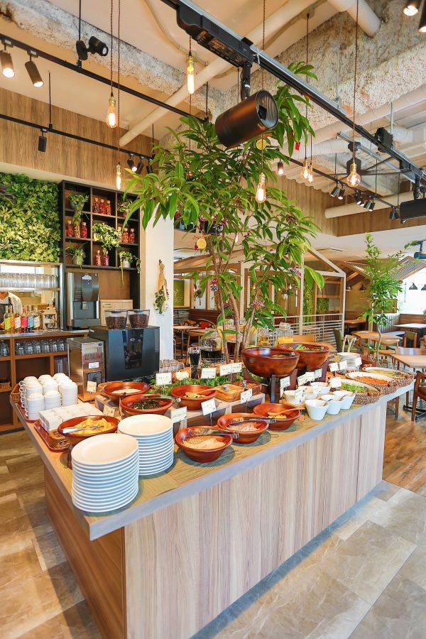 野菜ソムリエ、佐藤由紀子さんが野菜を厳選しているサラダバー。使用する野菜は、土づくりからこだわった大阪北摂エリアの農家さんのものが中心。新鮮でおいしいと、評判です。 サラダバーのラインナップは、生野菜や海藻サラダのほか、日替わりの自家製デリやフォカッチャ、ポップオーバーなども。ランチ時には、パスタやグリル料理を注文すると、無料で付いています。