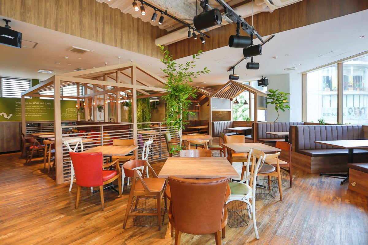 神戸三宮駅の南側、駅からのアクセス抜群な場所に2018年11月にオープンした「KOBE RIS CAFÉ(コウベリスカフェ)」。“リスがいるような森”をイメージして作られたカフェはインテリアも緑がいっぱいです。スイーツの一番人気は、果物が丸ごとのっているかに見えるパフェ。ビジュアルインパクトとそのかわいさから、オープン以来、神戸女子の心をつかんで離しません。【2020年3月現在閉店しています】