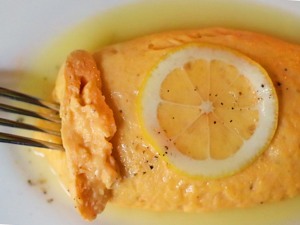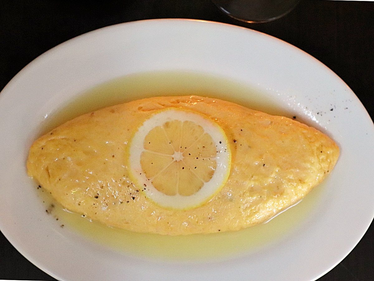 てっぺんに乗せられた輪切りの檸檬とたっぷりの檸檬ソースがアクセントになっているメニューです。